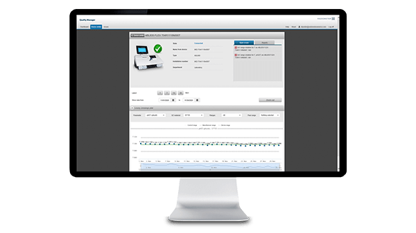 품질 관리자는 연결된 Radiometer ABL 장비에서 실시간으로 일일 및 월간 QC 성능을 수집합니다. 책상을 벗어날 필요 없이 단일 액세스 지점에서 이 데이터를 검사, 처리 및 보고할 수 있습니다.